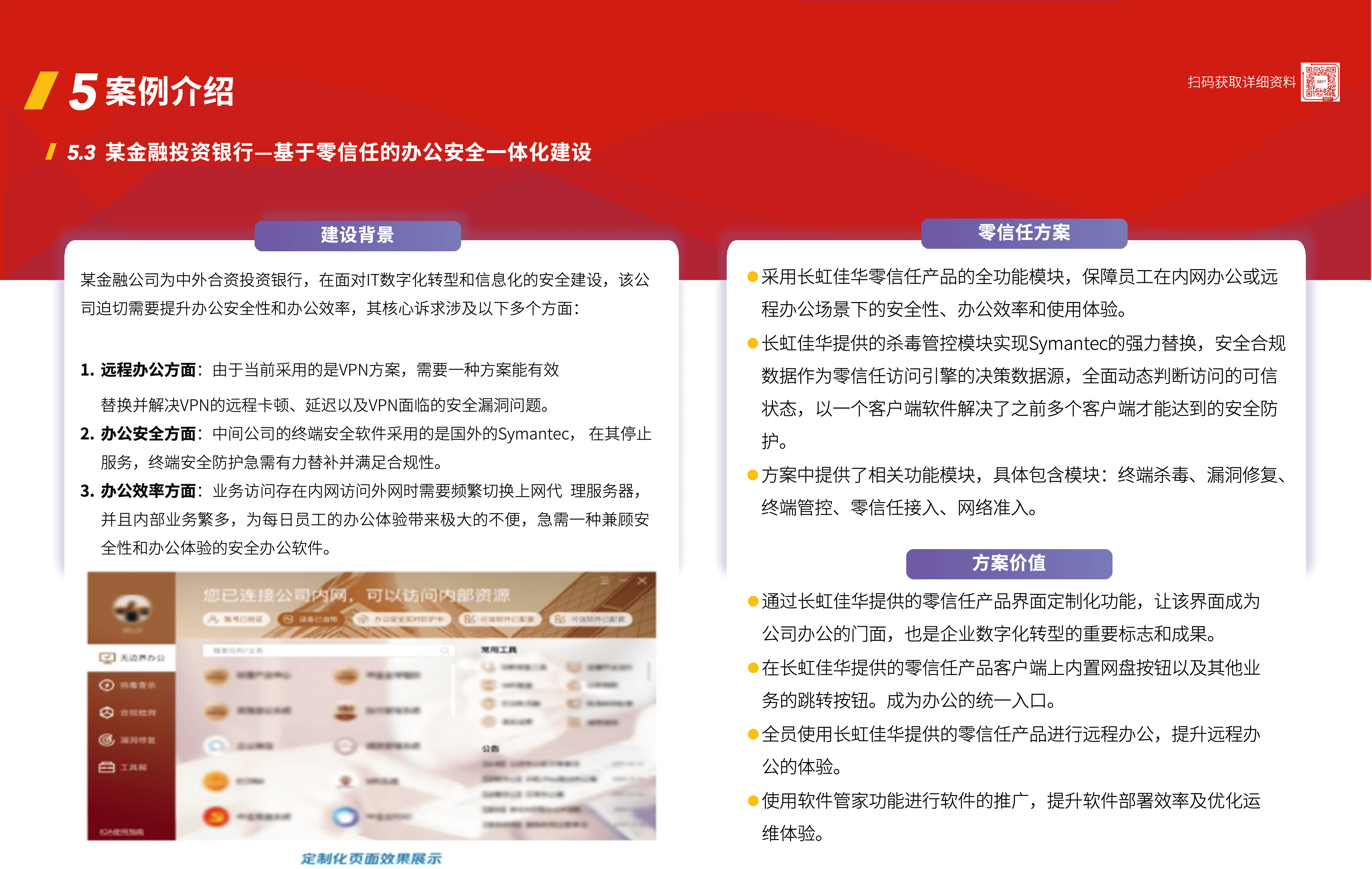 The intelligent zero-trust security solution, which meets the needs of the new generation of network security architecture, helps enterprises to solve the problems that the traditional security architecture is difficult to solve in the process of digital transformation, and has been serving customers in the government, finance, transportation and other industries.