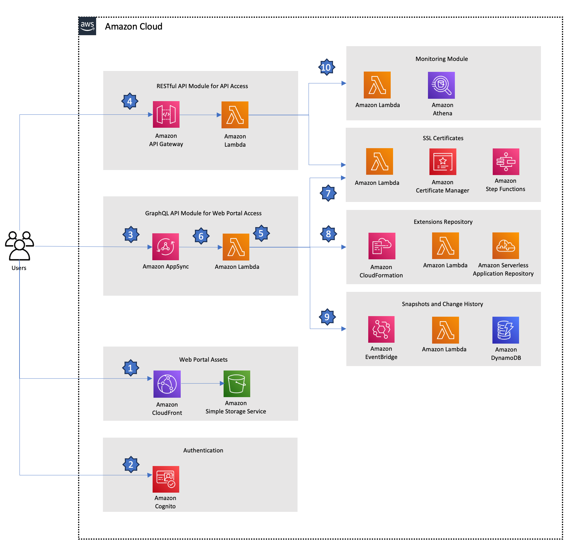 CloudFront Extensions是一個開箱即用的解決方案,幫助客戶高效地運維其亞馬遜云科技賬號中上百個CloudFront分配(CloudFront Distribution)。客戶可以靈活地按需使用方案多項功能,例如監控、預熱、防盜鏈、版本控制、網站鑒權、根據用戶設備類型跳轉等。方案當前的v2.0版本在v1.x版本的基礎上全面整合了各項功能,客戶可以使用方案自帶的用戶界面或API搭配CloudFront服務使用,輕松管理網站內容的分發。