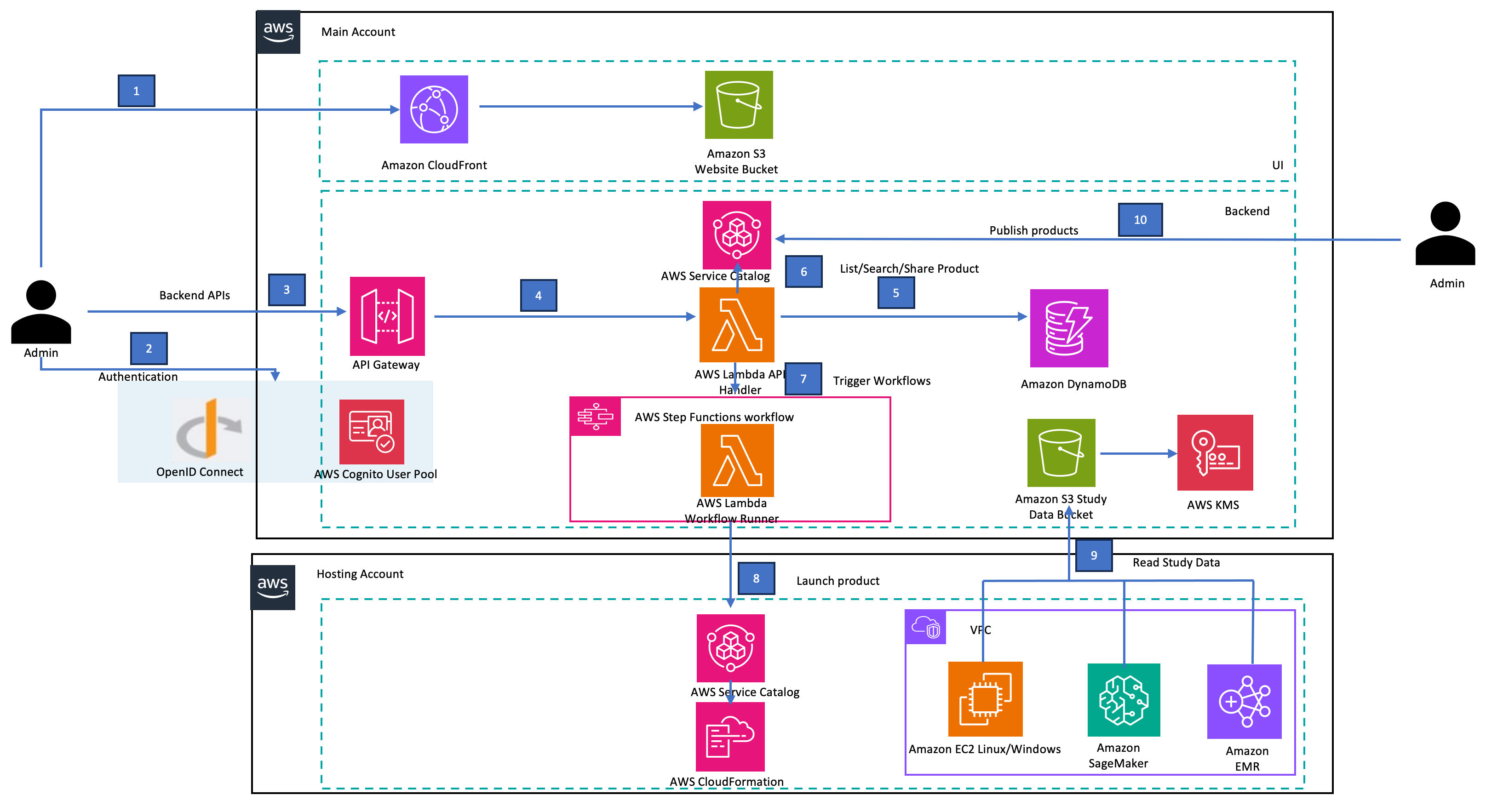 云上工作臺(Service Workbench)解決方案降低了科研人員使用亞馬遜云科技的技術門檻,讓科研人員無需學習云計算知識即可快速安全地在云上建立科研計算環境。該方案提供了簡單易用的網頁界面,權限管理工具,成本可視化報表,以及5個內置科研環境模板Juvtern Ntebook、RStudio、linux、Windows、Hadoop,并且支持通過CloudFomation模板自定義科研環境云上工作臺Service Workench) 幫助高校和科研構的IT團對研究人員所需的數據、工具和計算能力的訪問提供安全、可重復和聯合的控制。通過自動創建研究環境、簡化數據訪問并提供價格誘明度,研究人員可以把他們寶貴的時間放到科研項目本身上,從而加快科研進程。