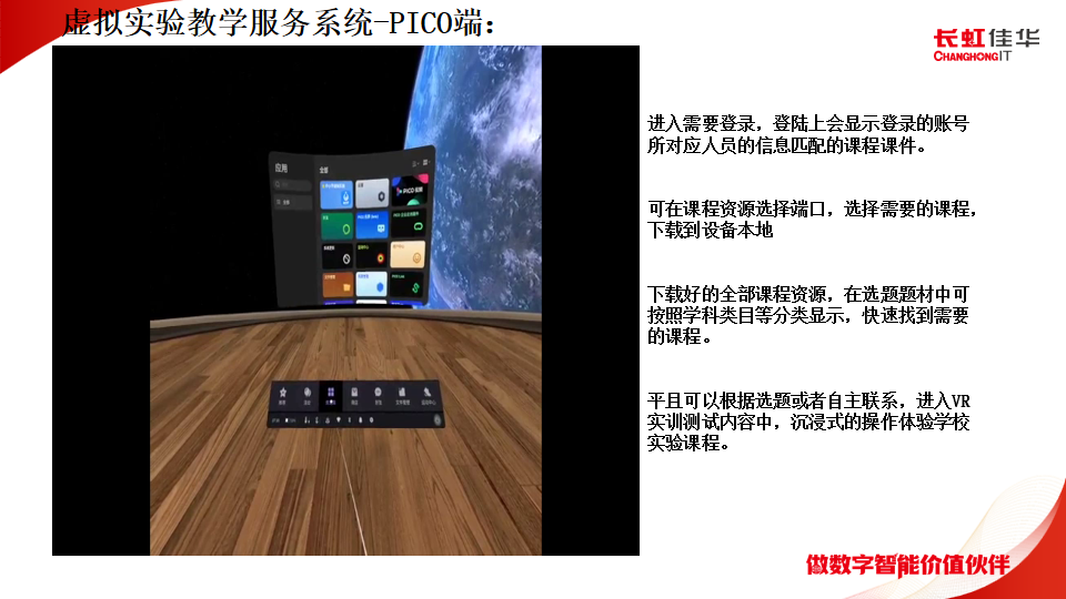 虛擬實驗教學服務系統-PICO端:平且可以根據選題或者自主聯系,進入VR實訓測試內容中,沉浸式的操作體驗學校實驗課程。