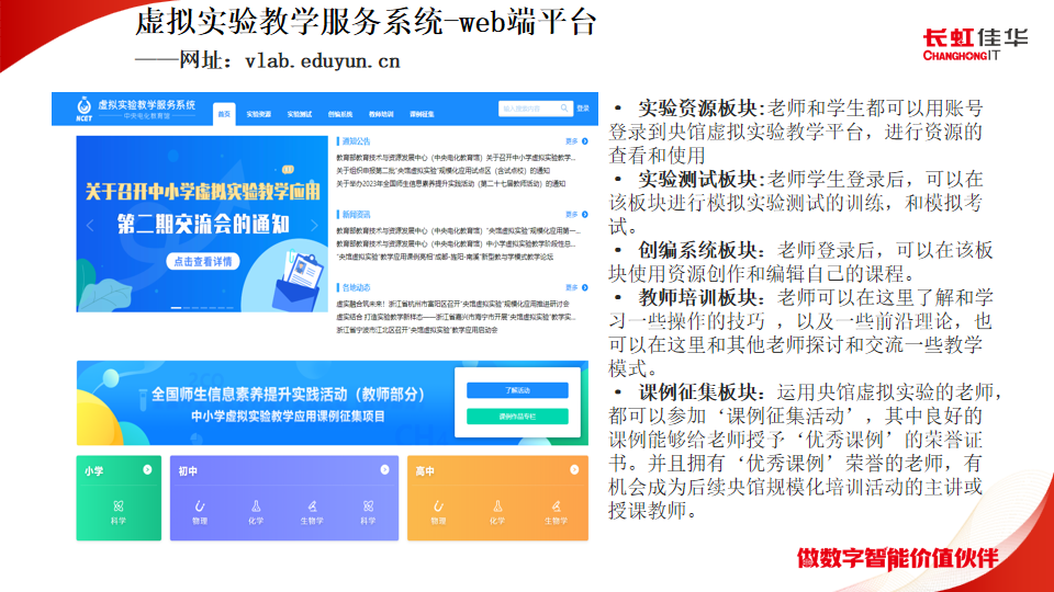 · 課例征集板塊:運用央館虛擬實驗的老師,都可以參加‘課例征集活動’,其中良好的課例能夠給老師授予‘優秀課例’的榮譽證書。并且擁有‘優秀課例’榮譽的老師,有機會成為后續央館規模化培訓活動的主講或授課教師。